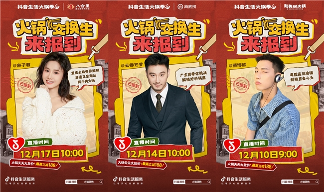 跟着“火锅交换生”代表吃火锅,不仅做攻略不“费脑”,买单也不“肉疼”!12月10日、12月14日、12月17日,@蔡博欣 、@云吞它爹 、@密子君 将分别联合赵美丽火锅、海底捞、八合里潮汕鲜牛肉火锅三大火锅商家开启火热直播,为大家带来超值团购福利。不用再为“去哪吃、怎么点”纠结,提前预约达人直播就能轻松拿捏地道吃法和超低好价!从川渝辣锅的辣度选择到潮汕牛肉火锅的必点菜品,再到不同食材的“黄金”涮煮时间……都有“课代表”手把手教学,跟着达人吃同款准没错!记得看好时间,锁定直播间抄作业!